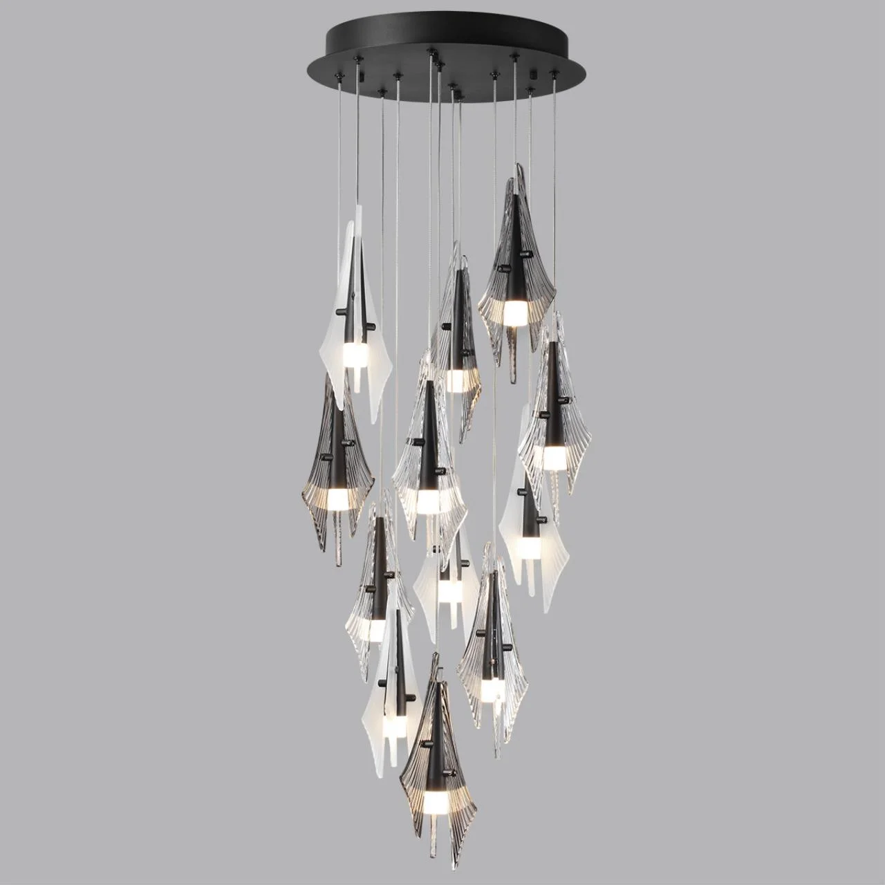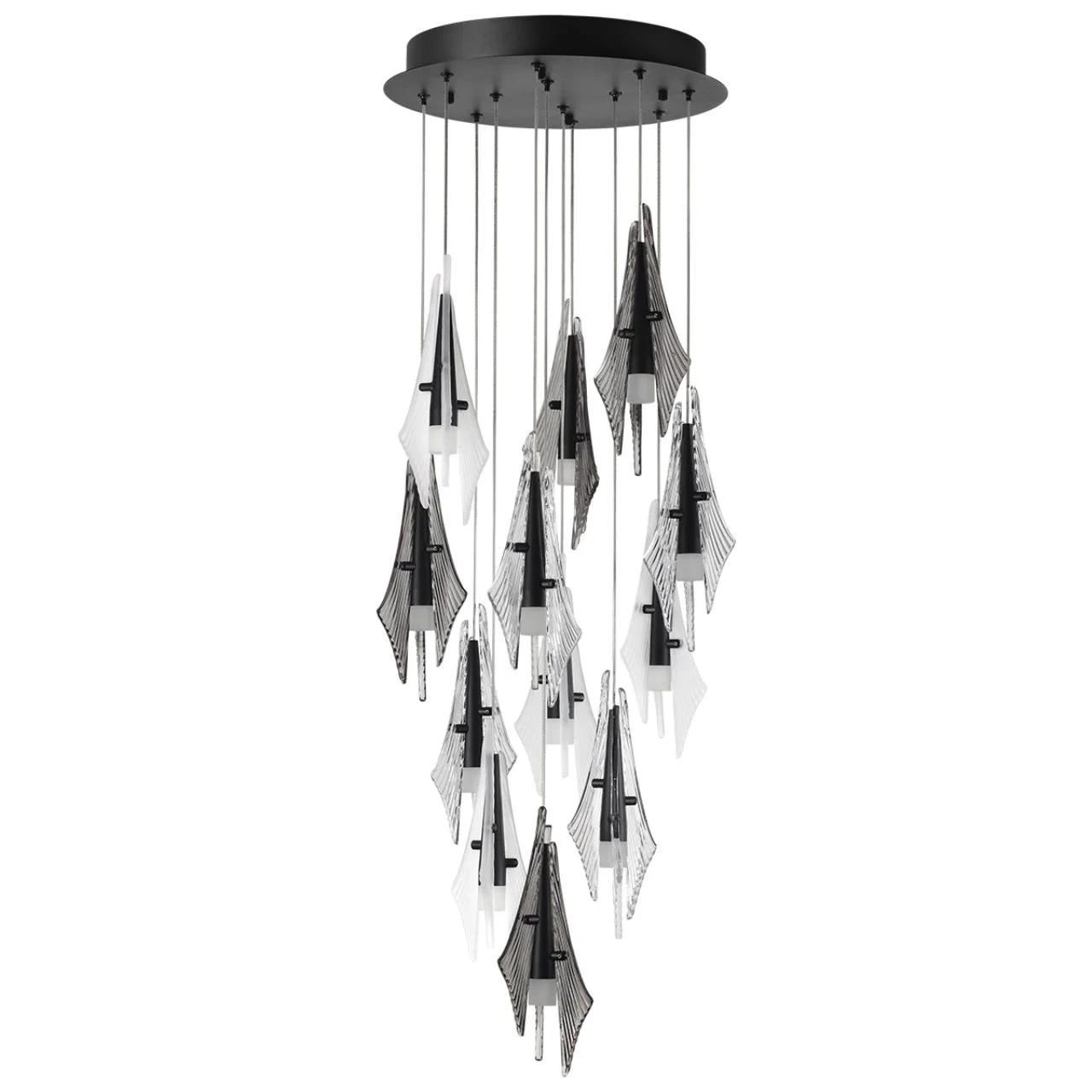 5442/69L L-VISION ODL_EX26 черный/бел.матовый/прозрачн./дымчатый/металл/стекло/акрил Люстра каскадная LED 69W (12*5.75W) 3000K 5490Лм AFALINA