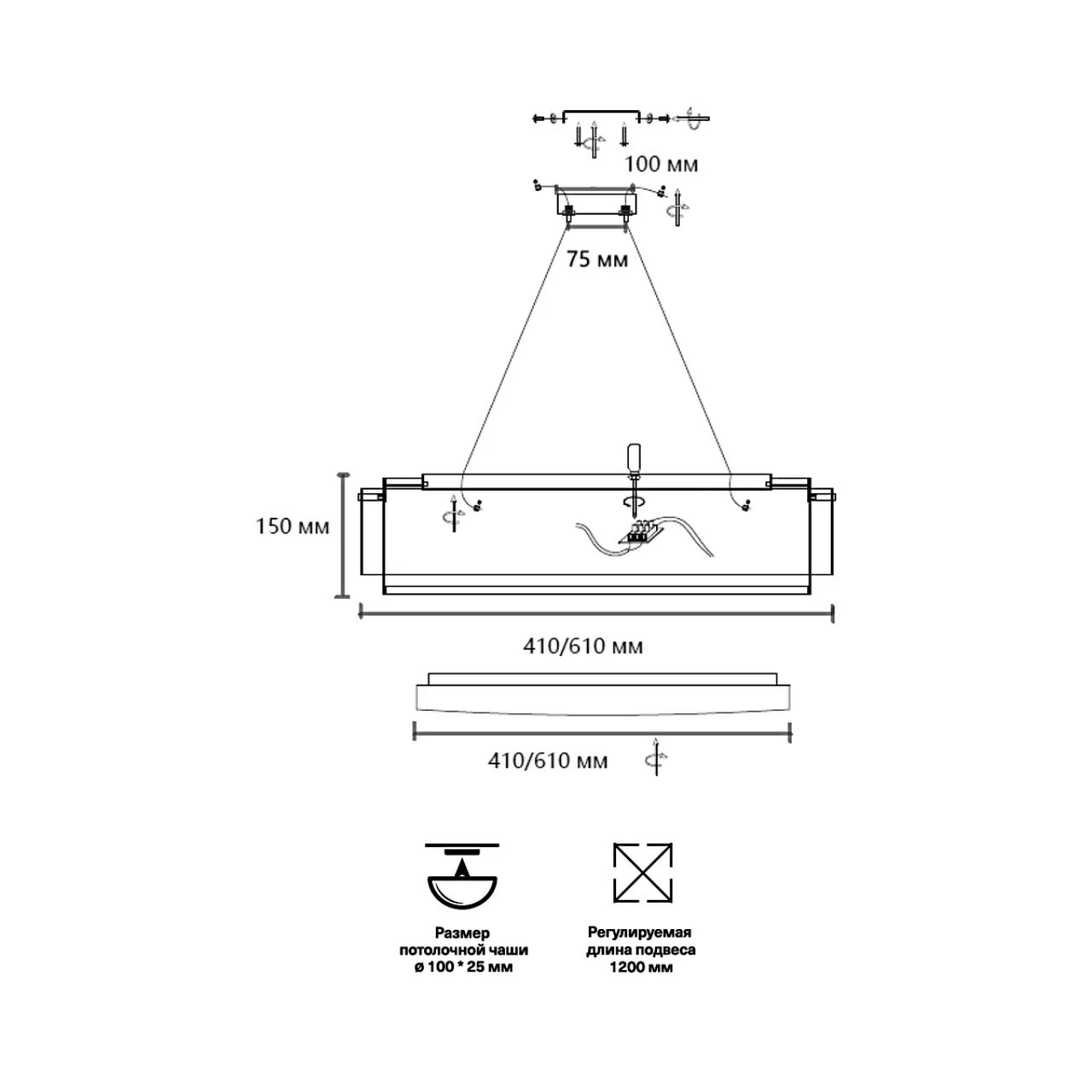 7692/L SN 053 Подвесное крепление для светильника ANTEY LED металл/черный 1,2м ANTEY