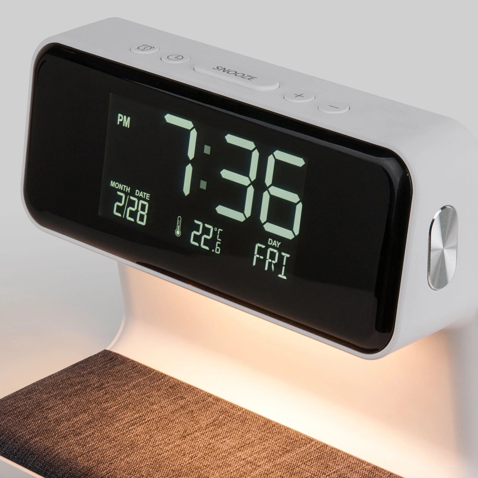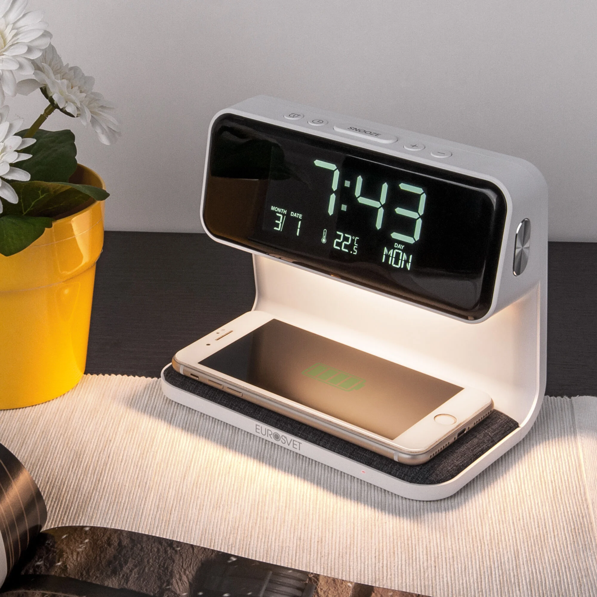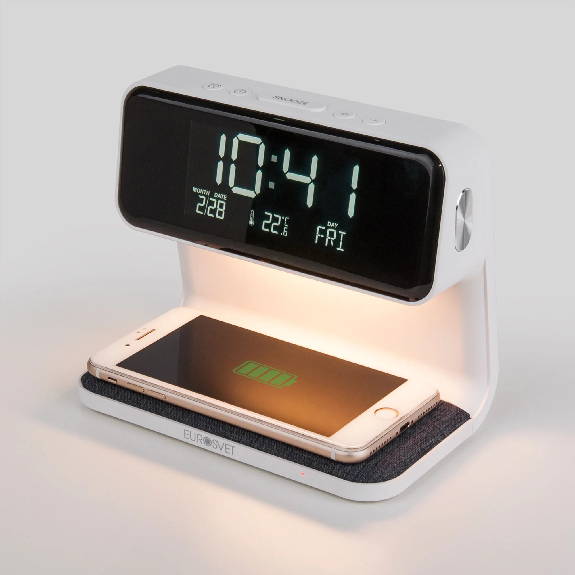 Настольный светодиодный светильник с беспроводной зарядкой и будильником 80506/1 белый