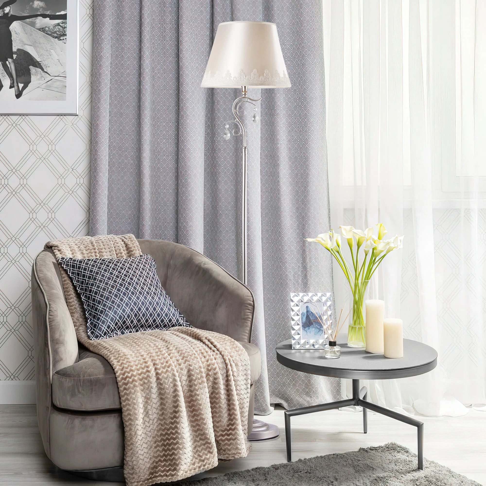 Напольный светильник с тканевым абажуром 01023/1 серебро