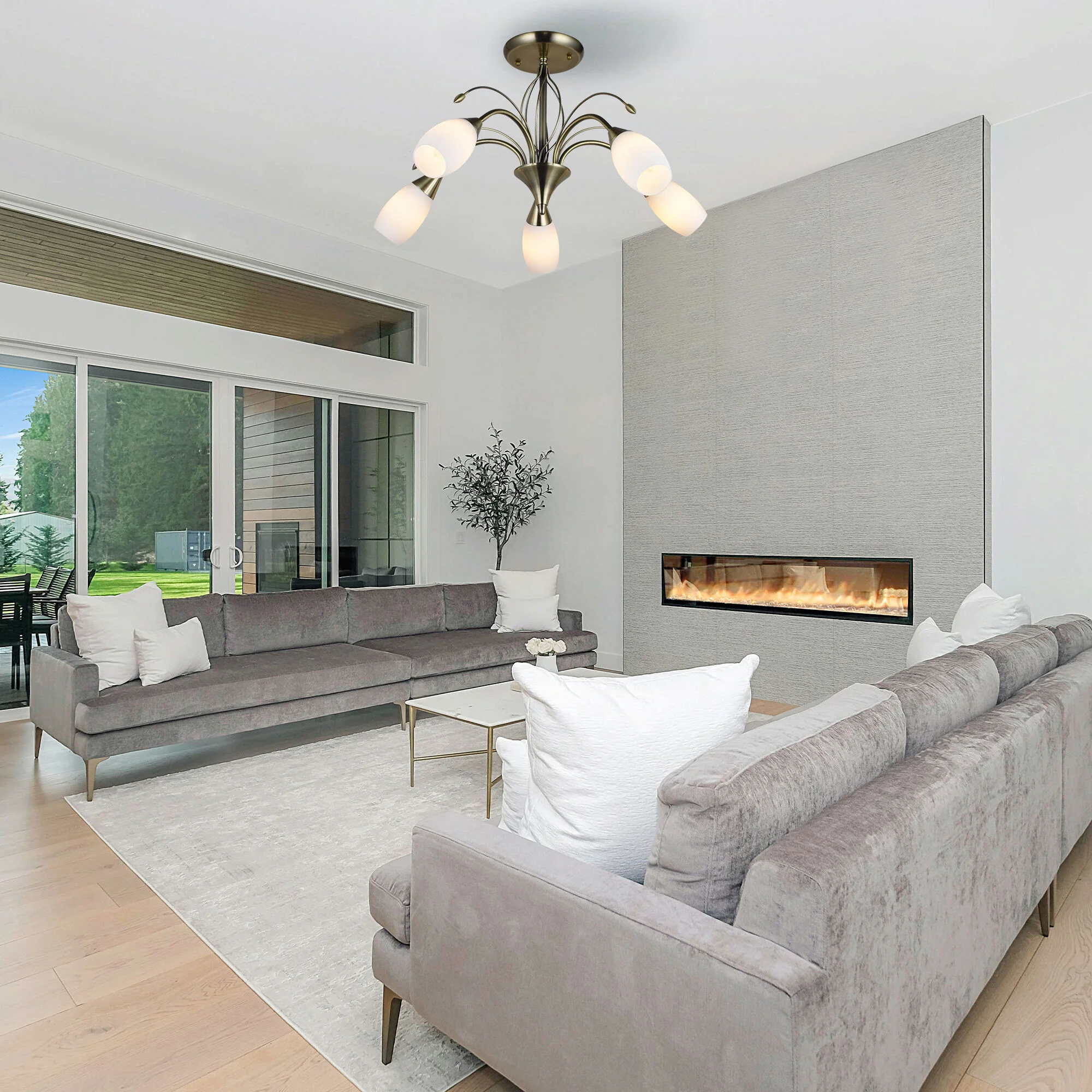 Потолочная люстра со стеклянными плафонами 30280/5 античная бронза