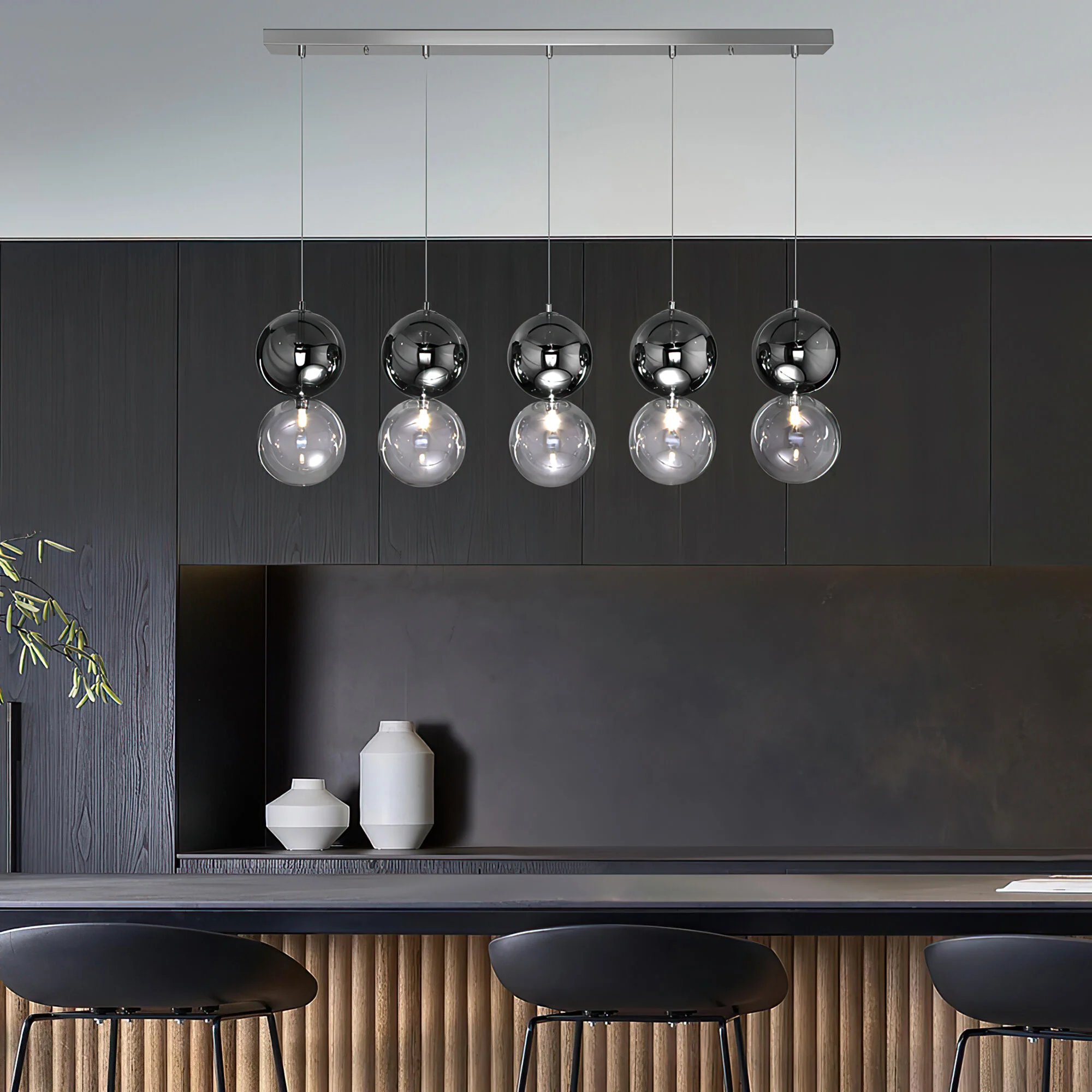Подвесной светильник со стеклянными плафонами 50091/5 хром/дымчатый