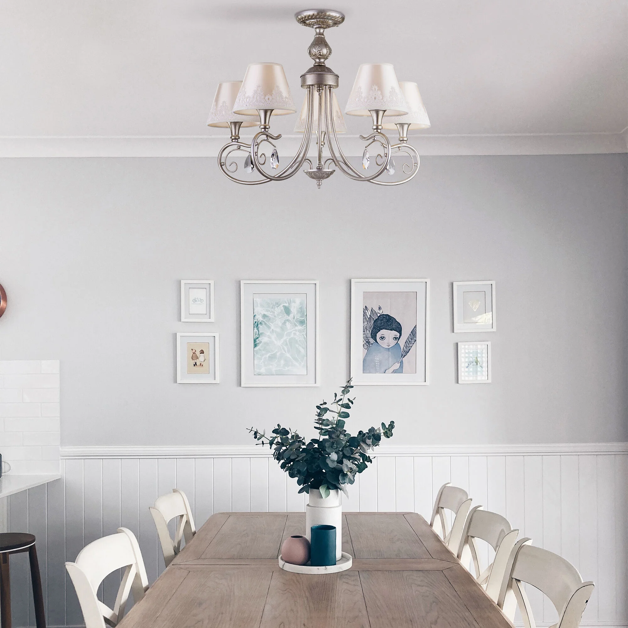 Потолочная люстра с тканевыми абажурами 60069/5 серебро