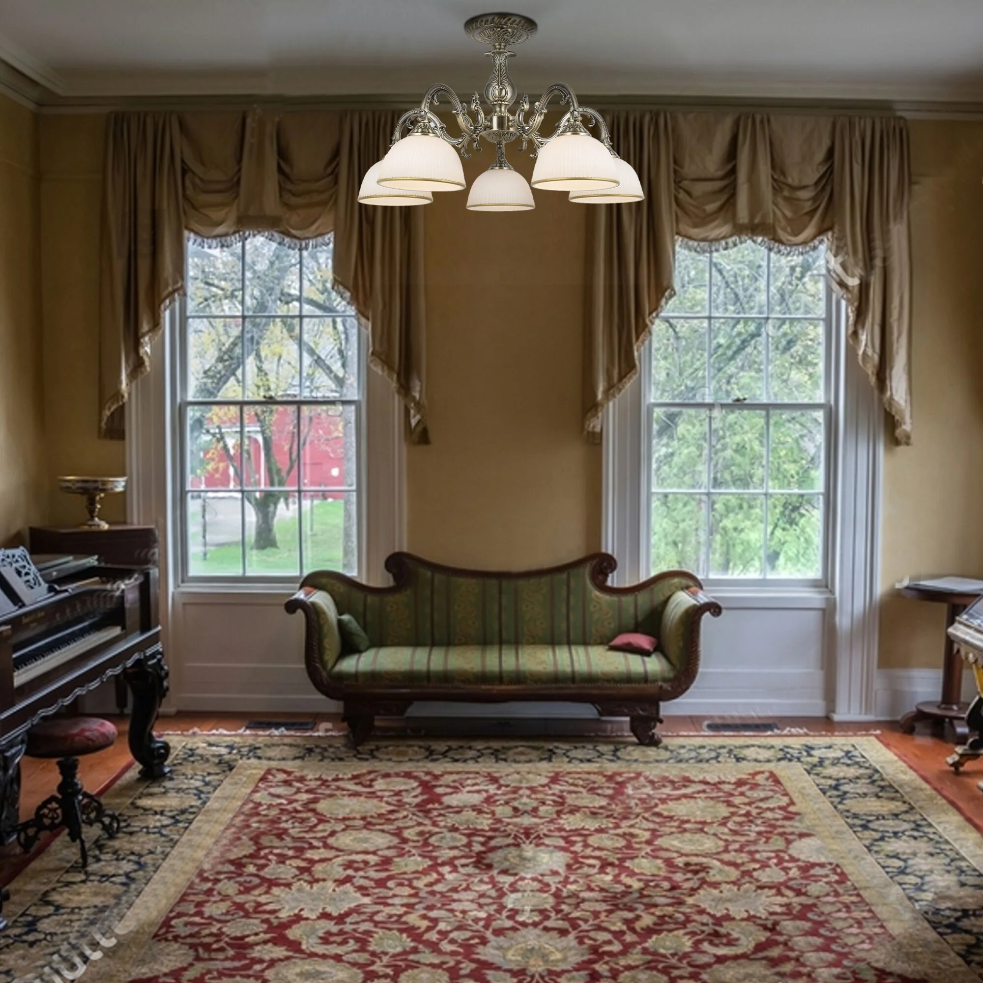 Потолочная люстра со стеклянными плафонами 60106/5 античная бронза